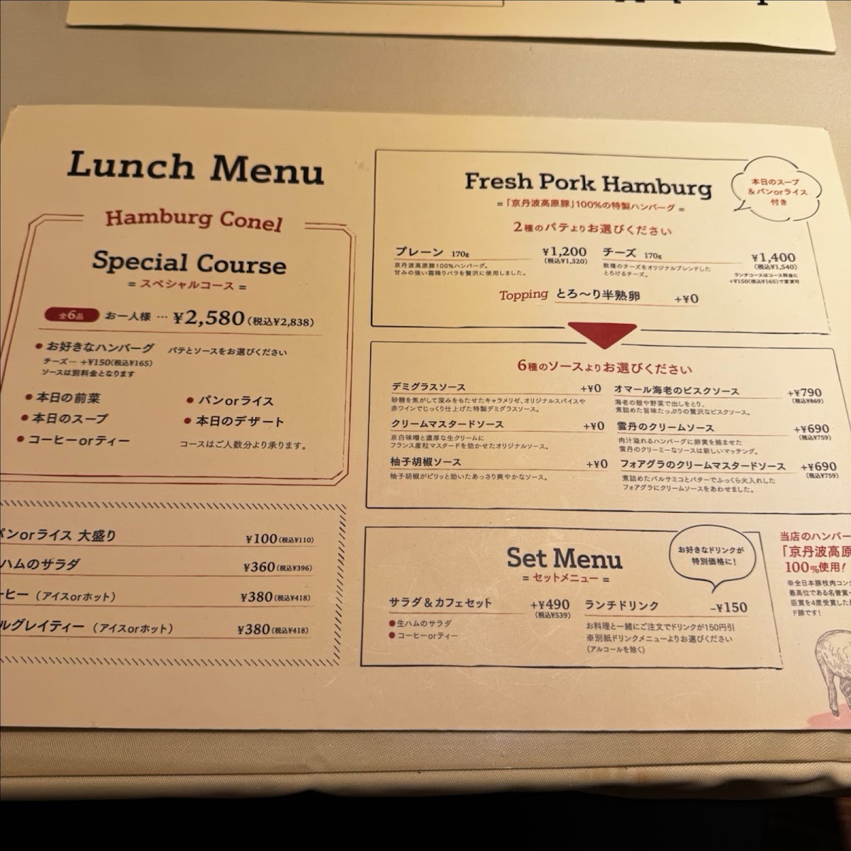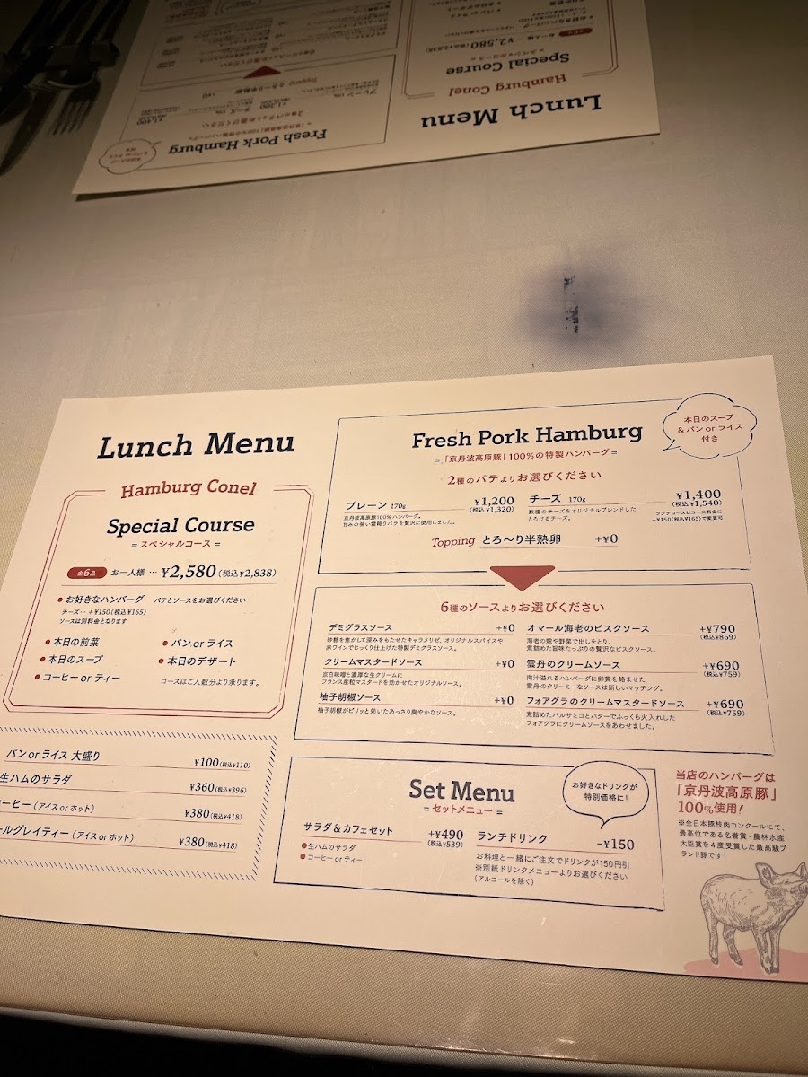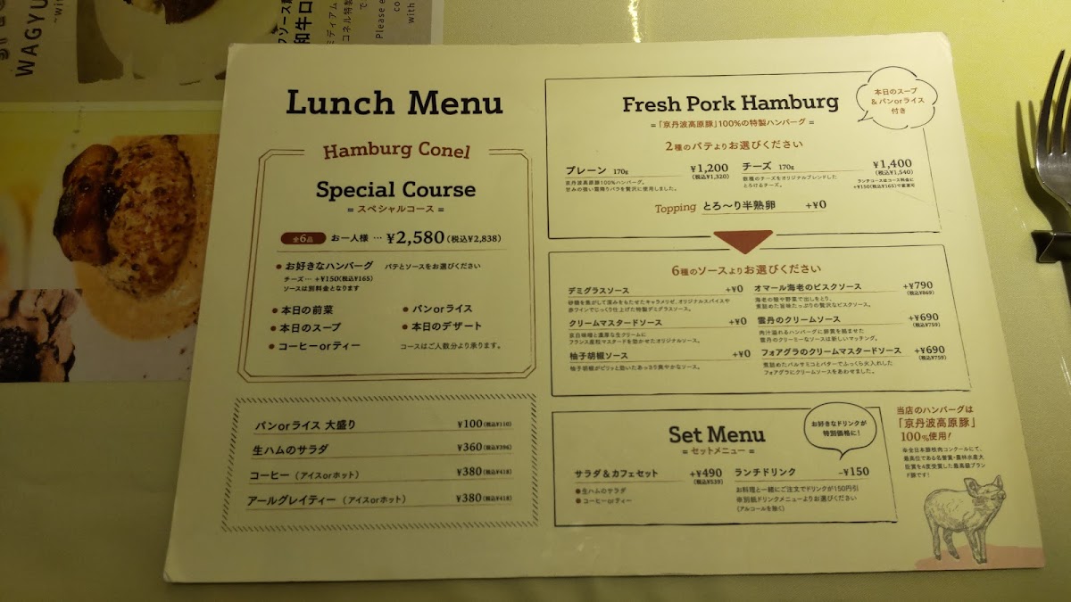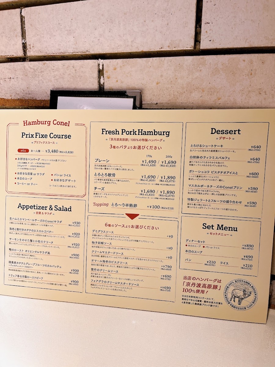 Welcome to **Japanese Hamburg Steak “Conel”**, an extraordinary culinary experience nestled in Kyoto. This vibrant eatery specializes in the exquisite *hamburg steak*, a delightful Japanese twist on a classic. Their menu features tantalizing options such as the *seasonal scallop and grapefruit carpaccio* and the indulgent *ham and camembert cheese salad*, both perfect ways to start your meal.